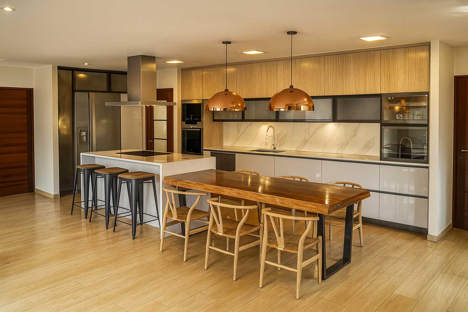 • Fabricación de muebles a medida: Diseñamos y fabricamos muebles únicos en madera, melamina, piedra, metal o vidrio según tus necesidades.