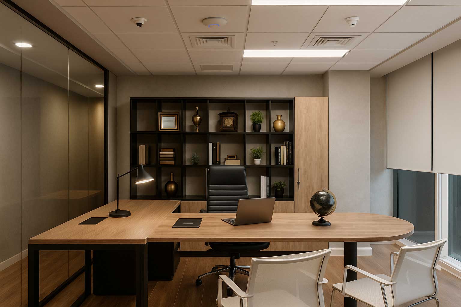 • Diseño de oficinas: Creamos oficinas funcionales, modernas y eficientes, alineadas con tu identidad y productividad.